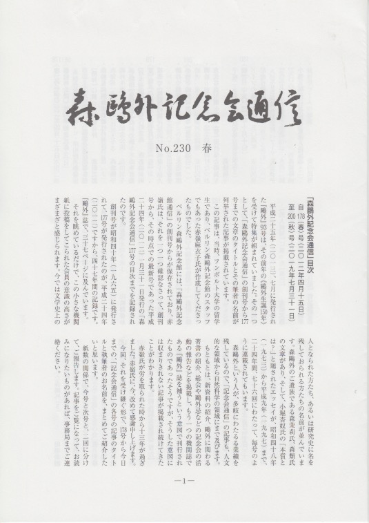 - Brief in Mori Ôgai Kinenkai Tsûshin No. 230 Frühling (2025.05.03)